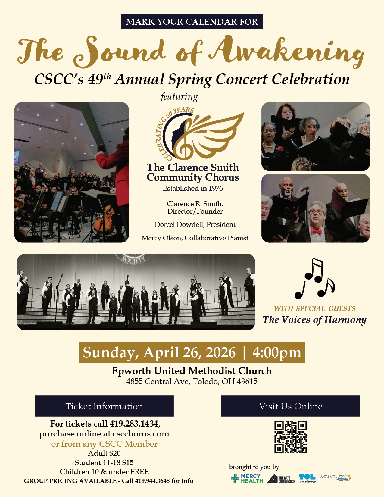 Two tickets to The Sound of Awakening with the Clarence Smith Community Chorus on Sunday, April 26 at 4:00 PM at Epworth United Methodist Church (note: the day after the auction), featuring special guests The Voices of Harmony. Plus a $50 gift card to RARE Savory Taste Kitchen.